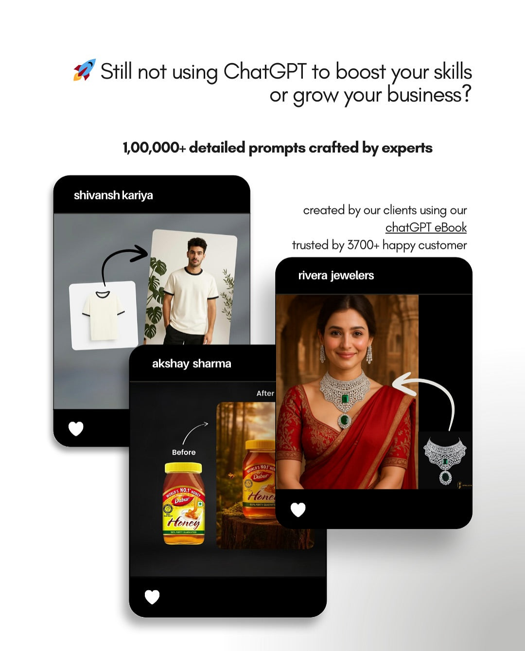 "I help Amazon, Flipkart, Meesho & E-Com Platform get high-quality AI product image prompts to create stunning photos, save money on photoshoots & boost sales fast."